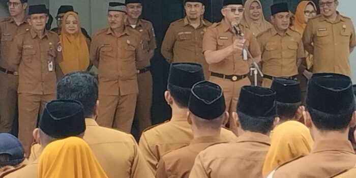 TUTUYAN – Sekretaris Daerah (Sekda) Kabupaten Bolaang Mongondow Timur (Boltim), Iksan Pangalima, memimpin apel kerja perdana di bulan Maret yang dilaksanakan di