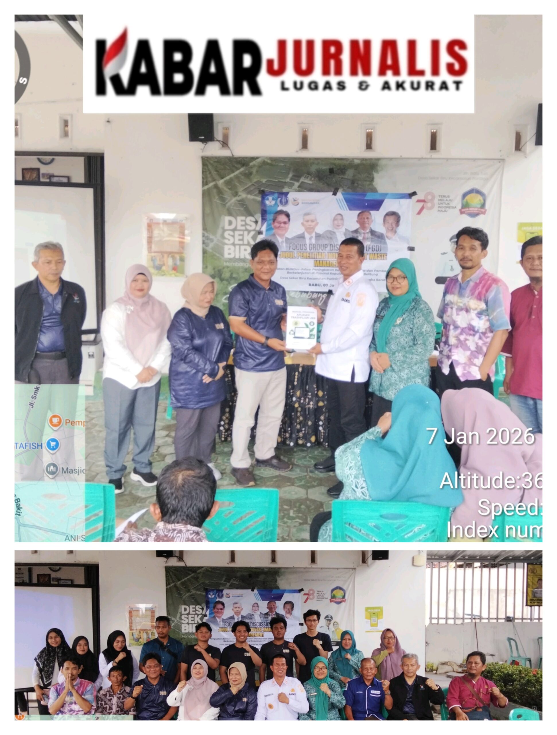 Kabar Jurnalis Com–Pemerintah Desa Sekar Biru, Kecamatan, Parittiga, Bangka Barat, menerima bantuan 1 unit mesin pencacah sampah organik, dari Universitas Bangka Belitung (UBB), diserah langsung untuk BUMDES Cikar Mendayu. Rabu 07/01/2026, dikantor Desa setempat.