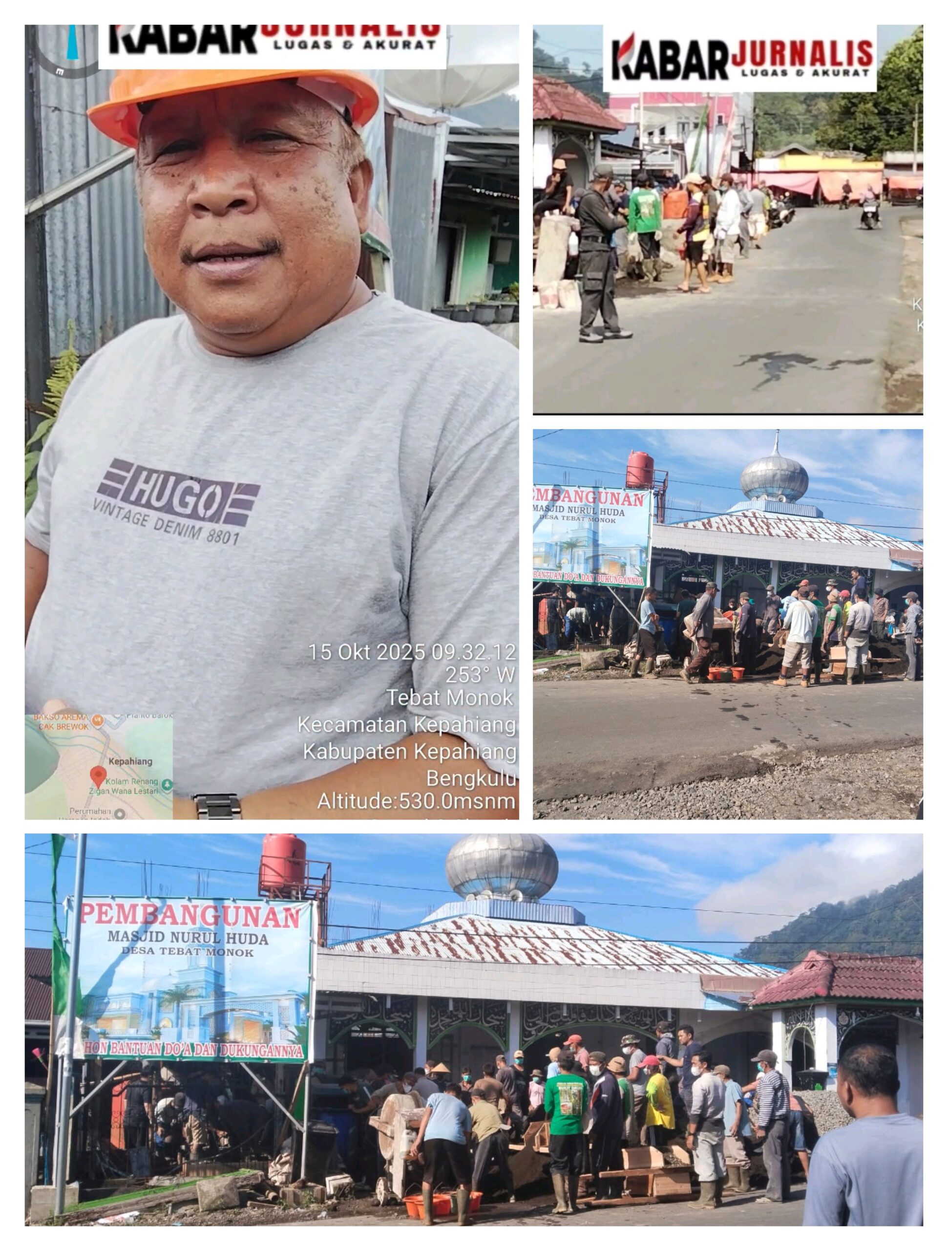Terbukti, saat ratusan Warga Desa Tebat Monok bergotong-royong menunjukkan Kekompakan dalam proses membangun Masjid Nurul Huda, yang dikerjakan secara Swadaya. Rabu 15/10/2025.